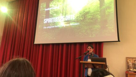 Prof. Isabel Laack. lehrt an der Universität Tübingen über europäische Gegenwartsreligiosität und indigene Traditionen in Mittel- und Nordamerika. In einem spannenden Vortrag stellte sie den Zuhörer*innen unterschiedlichen Zugänge zum Wald vor.