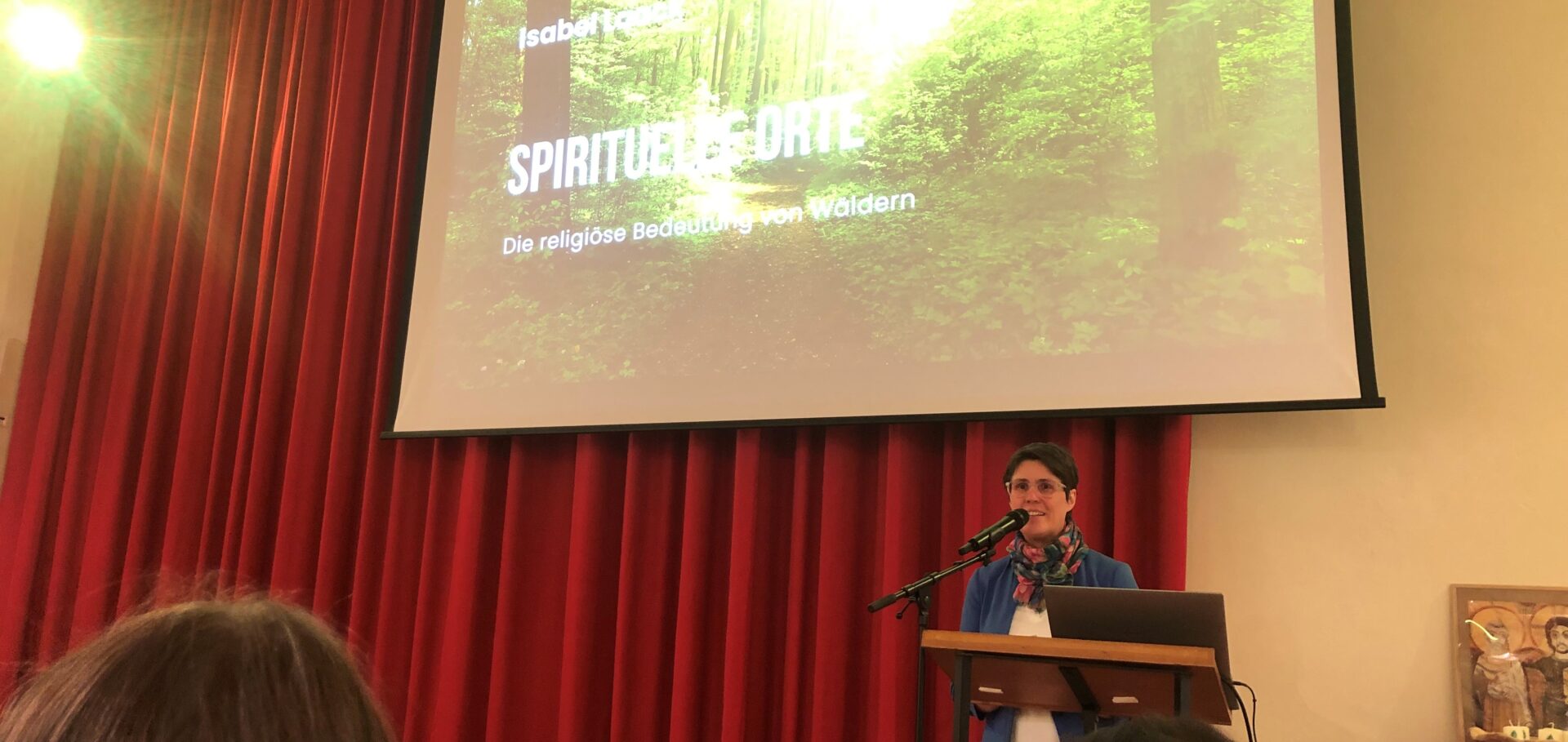 Prof. Isabel Laack. lehrt an der Universität Tübingen über europäische Gegenwartsreligiosität und indigene Traditionen in Mittel- und Nordamerika. In einem spannenden Vortrag stellte sie den Zuhörer*innen unterschiedlichen Zugänge zum Wald vor.