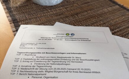 Die Kommunale Nationalpark-Versammlung tagte am Dienstag, den 21.04.2026, am Nationalpark-Tor Erbeskopf. Es gab zwei Abschiede, viele neue Informationen aus der Nationalparkverwaltung, Nachbesetzungen und Neuwahlen sowie Anträge aus der Versammlung.