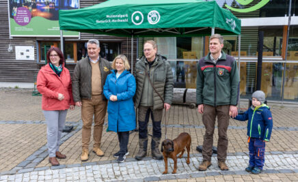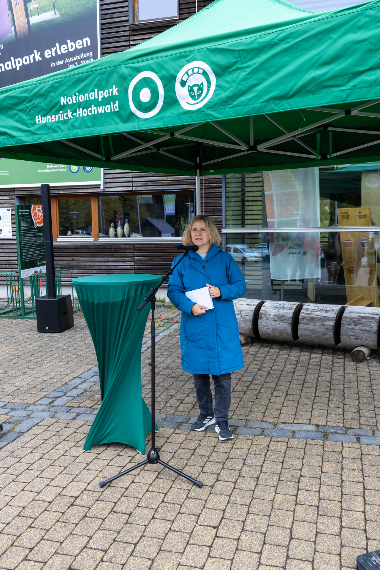 Feierlich eröffnet wurde der neue Pfad von Umweltministerin Katrin Eder. Gemeinsam mit Landrat Miroslav Kowalski, Tamara Breitenbach, Bürgermeisterin der Verbandsgemeine Thalfang, Jasper Schneeberger, Leiter des Forstamts Idarwald und Nationalpark-Leiter Dr. Harald Egidi begrüßte man die Gäste und lud dazu ein, den neuen Pfad gemeinsam zu erwandern. Mitarbeiter*innen des Nationalparks, des Naturparks und des Forstamts Idarwald begrüßten die Wandergäste an den Infostationen und informierten die Interessierten zum neuen Wanderweg vor Ort.