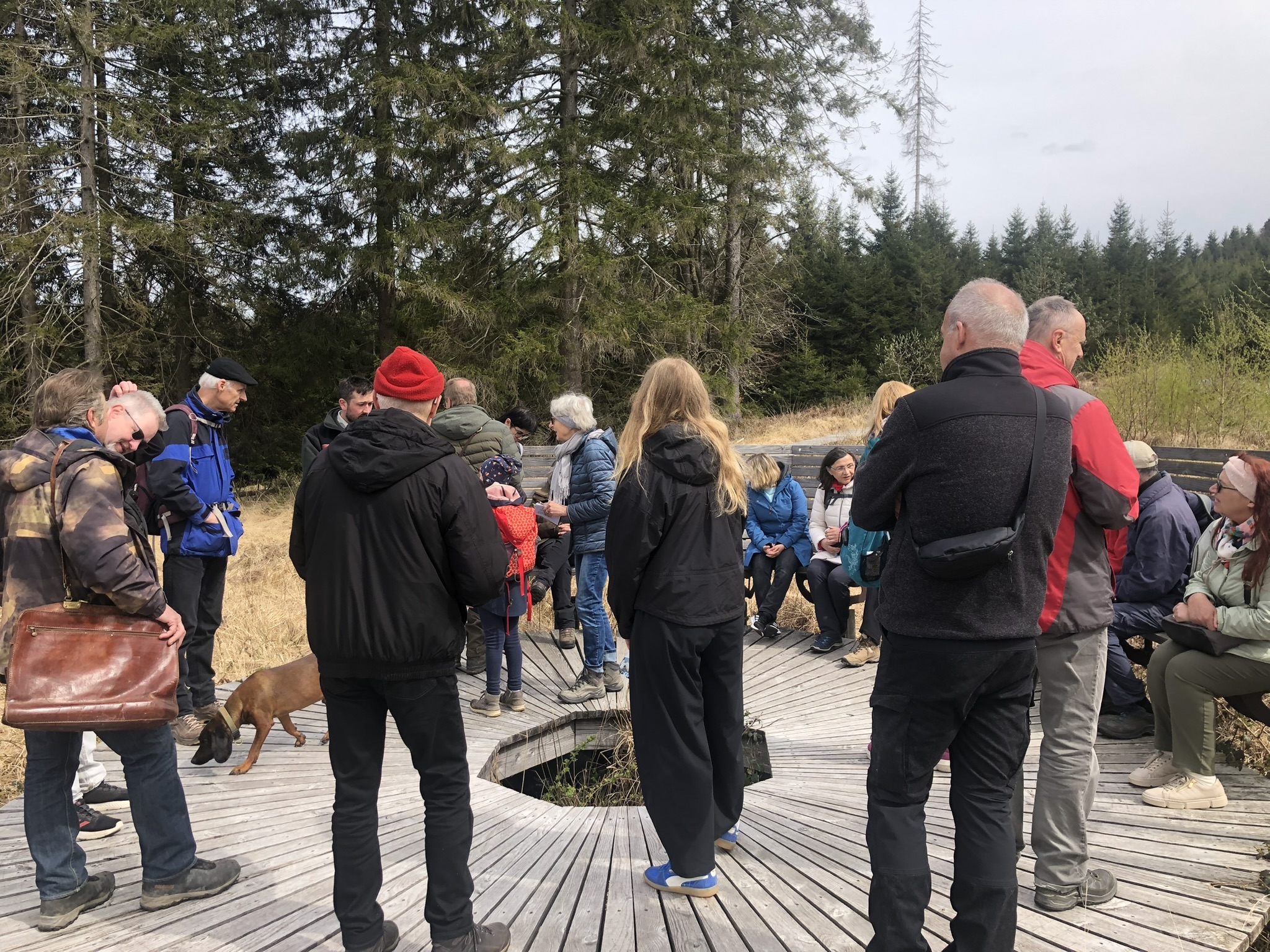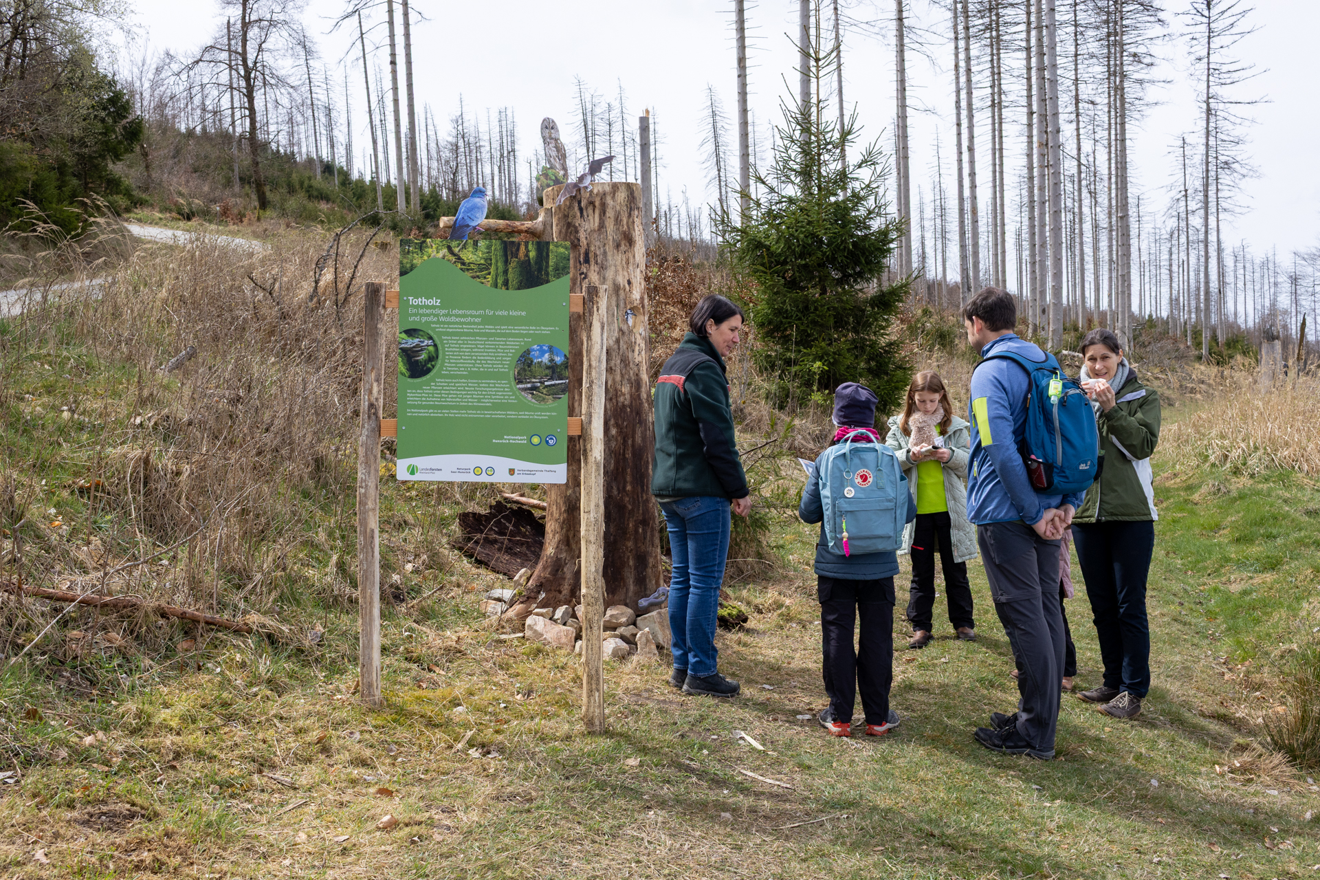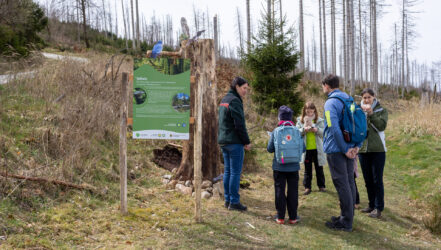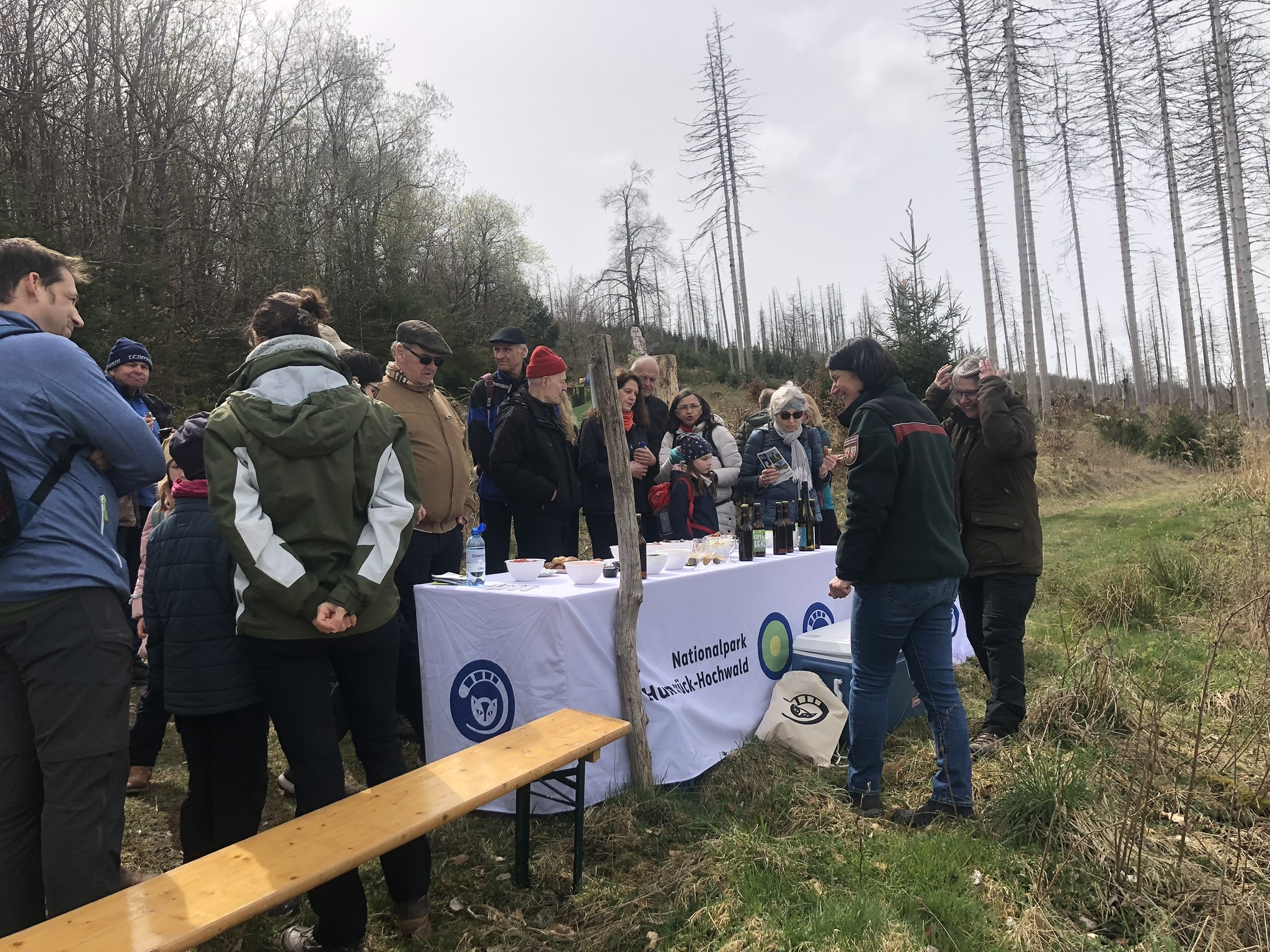 Die Angebote an dem Tag wurden alle gut angenommen. Es starteten zwei Touren mit Nationalparkführern, bei denen die Tourteilnehmer und -teilnehmerinnen im Vorfeld einen Picknick-Rucksack gebucht hatten. Viele Familien wanderten mit Kindern über den 3,6 km langen neuen Walderlebnispfad. Am Wegesrand gibt es dort viel zu entdecken. Sechs Infostationen informieren über die Naturräume und bieten auch spannende Einblicke. Es gibt Rätsel zu lösen, man darf in einem großen Vogelnest rasten und der Lebensraum Totholz kann erforscht werden.