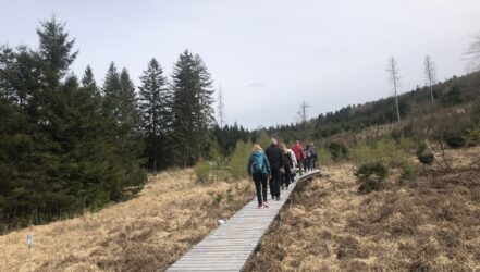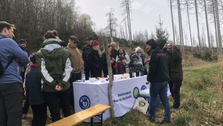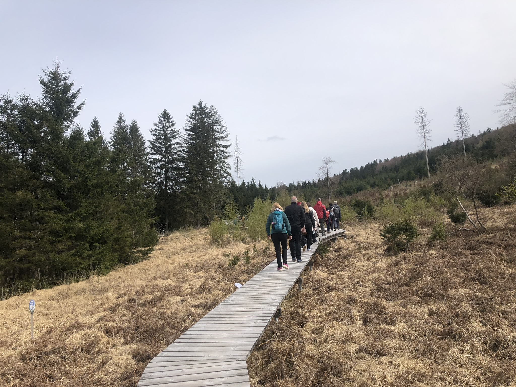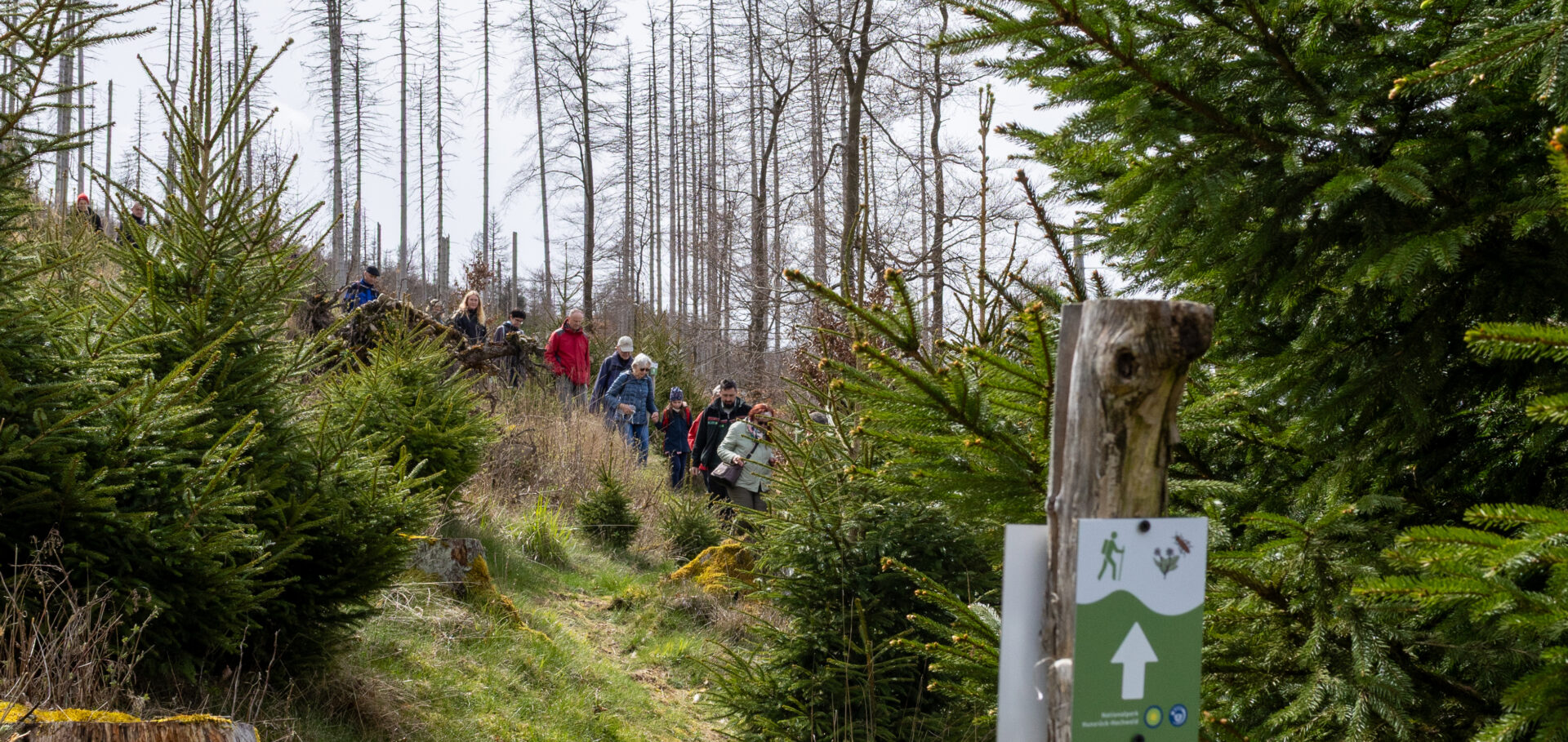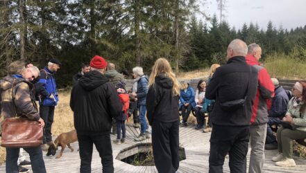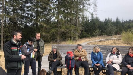 Die Angebote an dem Tag wurden alle gut angenommen. Es starteten zwei Touren mit Nationalparkführern, bei denen die Tourteilnehmer und -teilnehmerinnen im Vorfeld einen Picknick-Rucksack gebucht hatten. Viele Familien wanderten mit Kindern über den 3,6 km langen neuen Walderlebnispfad. Am Wegesrand gibt es dort viel zu entdecken. Sechs Infostationen informieren über die Naturräume und bieten auch spannende Einblicke. Es gibt Rätsel zu lösen, man darf in einem großen Vogelnest rasten und der Lebensraum Totholz kann erforscht werden.
