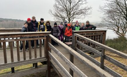 Ausflug zum WasserWissensWerk: Die Junior Ranger des Nationalparks waren im Februar mit ihren Betreuern unterwegs und besuchten das Besucher- und Informationszentrum an der Steinbachtalsperre bei Kempfeld, um gemeinsam mit Nationalparkführer Rainer Scriba Spannendes zum Thema Trinkwasser zu erfahren.