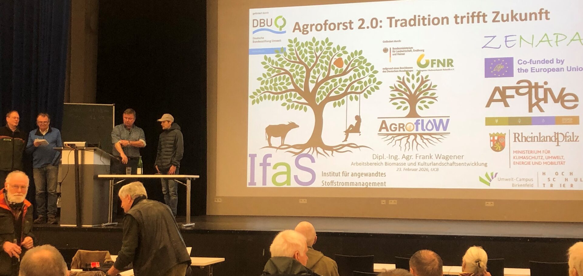 Rund 70 Gäste bei der Nationalpark-Akademie im Februar. Das Thema Agroforst aus dem Projekt ZENAPA wurde am Umwelt-Campus vorgestellt. Agroforstwirtschaft-Experte Frank Wagner referierte zu nachhaltiger Landschaftsentwicklung und ihrem Nutzen, um Klimaherausforderungen zu begegnen.
