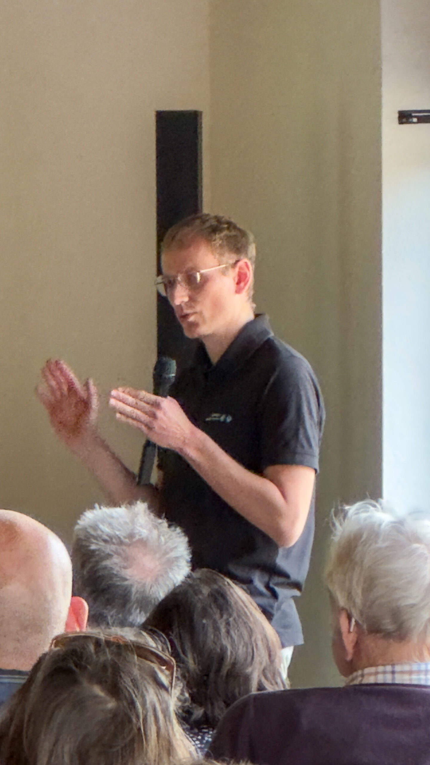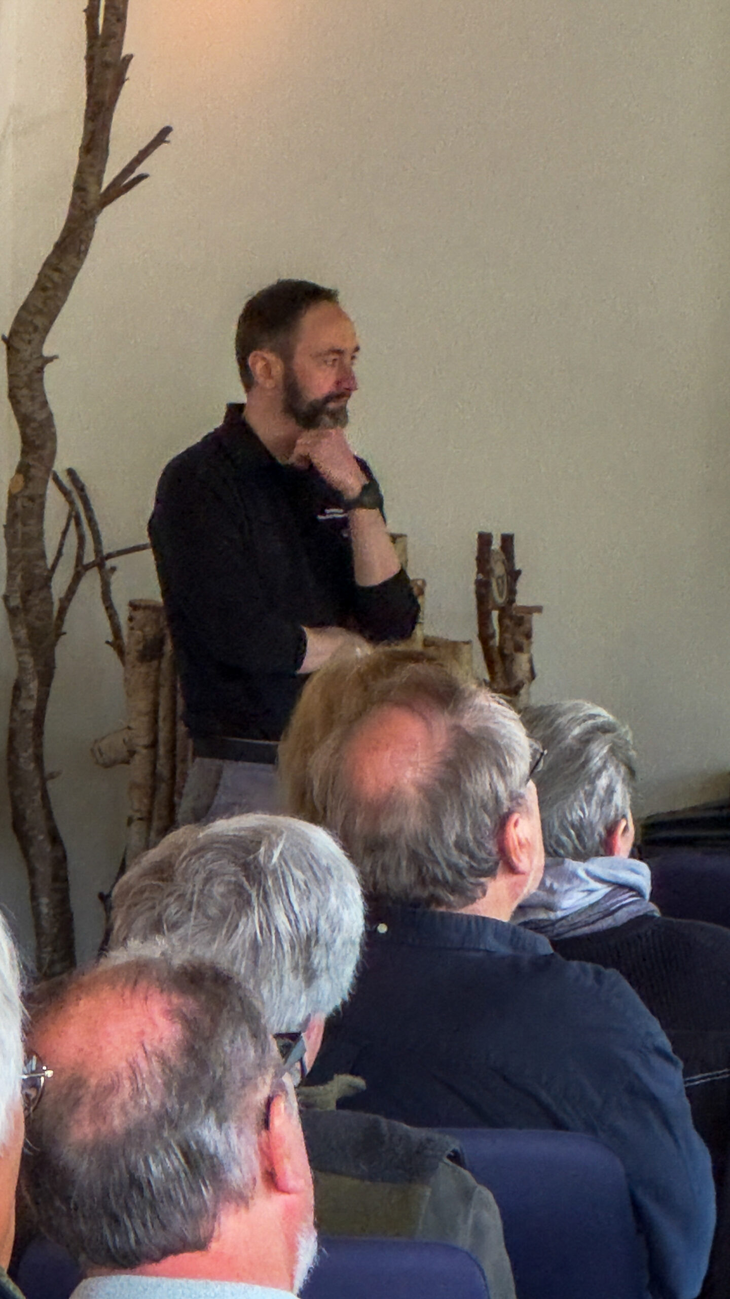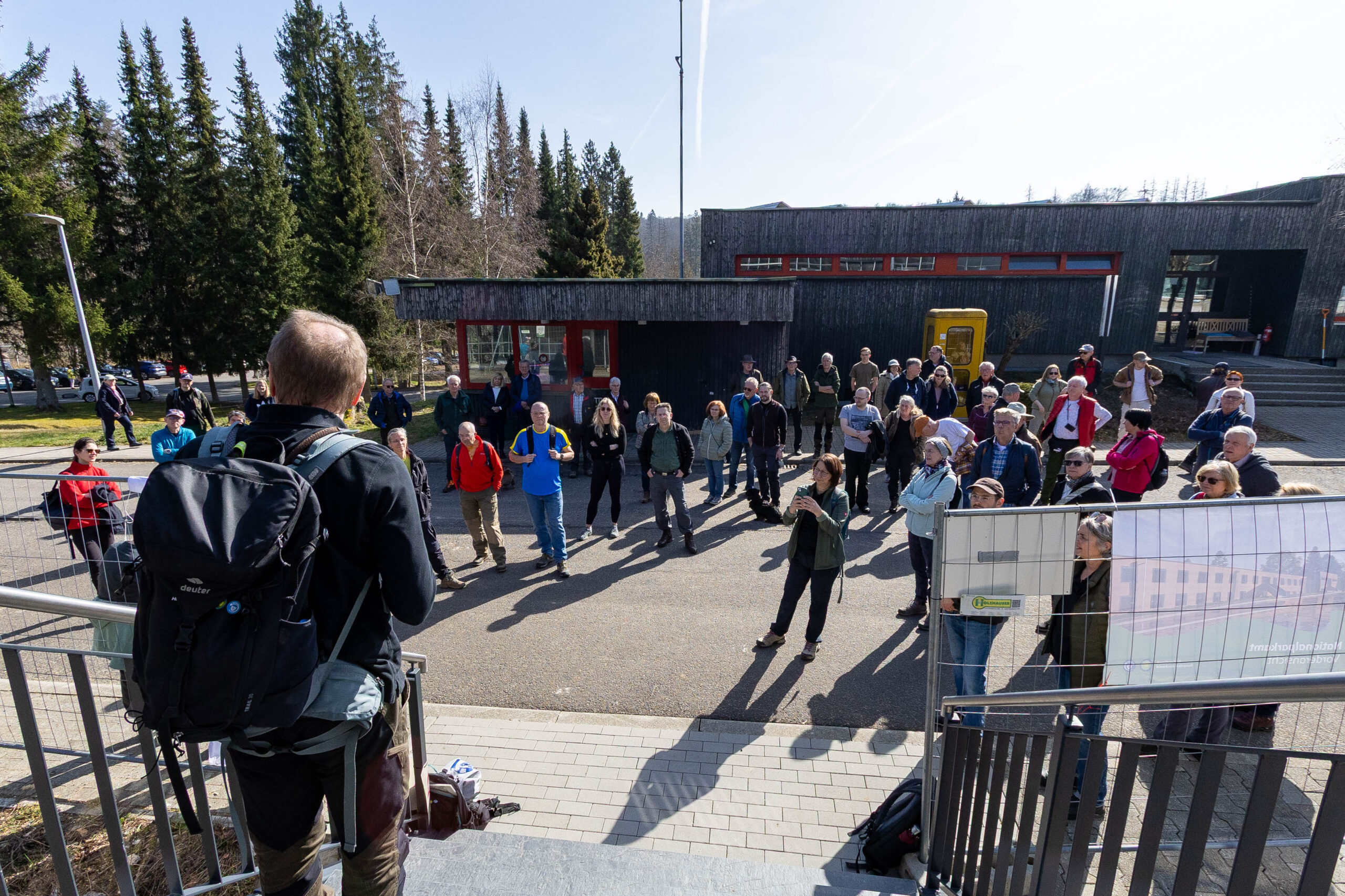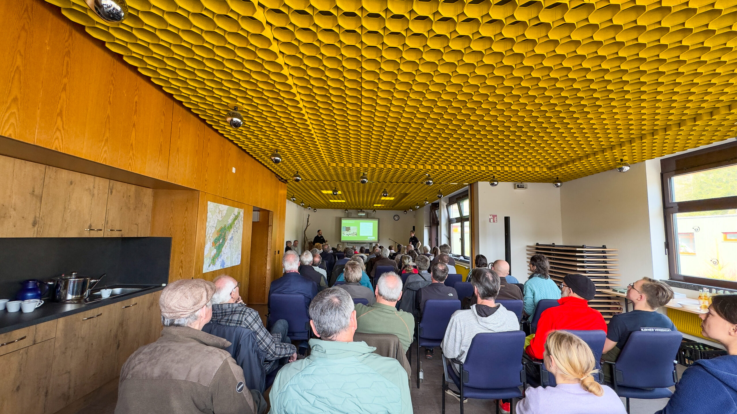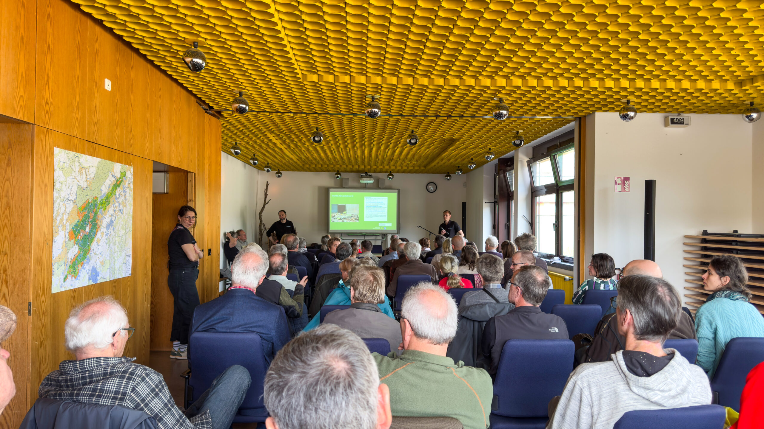 Das Publikum kam aus den an den Nationalpark angrenzenden Gemeinden, aber auch Nationalparkpartner, Nationalparkführer*innen und selbst Touristen aus Berlin waren unter den Gästen. Vor dem Programm führte Dr. Harald Egidi an beiden Tagen Interessierte durch die Räume des entkernten und energietechnisch auf den neuesten Stand gebrachten neuen Amtsgebäudes.