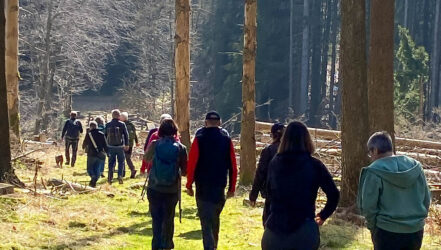 Am Sonntag ging es bei schönstem Wetter in die wilde Natur des Nationalparks: Auf drei ausgebuchten Exkursionen mit ca. 90 Teilnehmenden begleiteten Dr. Harald Egidi, Anja Eckhardt, Dr. Martin Mörsdorf und Johannes Hoffmann sowie Anne Speicher, Birger Führ und Lydia Hoff-Güdelhofer vom Naturpark die Wanderfreudigen auf besondere Touren: ins Offenland zu den Arnikawiesen in Thranenweier (eine weitere Exkursion in der Blütezeit ist geplant), zu den Kalamitätsflächen, auf denen sich die Wald-im-Wandel-Prozesse veranschaulichen lassen und auf eine Abenteuer-Tour über einen neuen Wildnispfad.