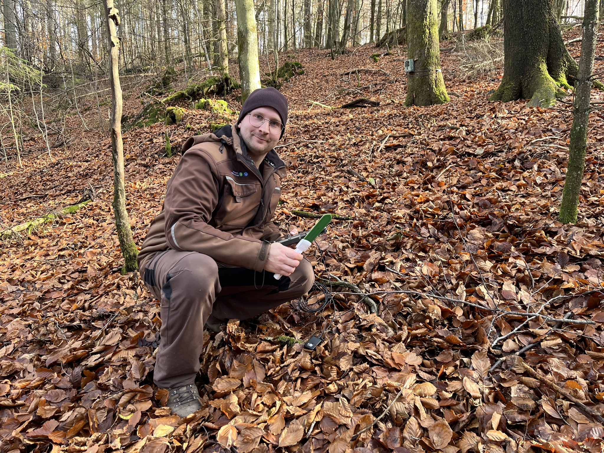 Ranger David Moore ist derzeit im Nationalpark Hunsrück-Hochwald unterwegs und installiert Audio- und Klimadatenlogger abseits der Wege. Es sind Bereiche, in denen die Nationalparkverwaltung Informationen in der Natur zu Forschungszwecken aufnimmt. Bereits an 70 Orten sind Wildtierkameras installiert, die Bilder von Säugetieren aufnehmen, wie Rehe, Füchse, Wildschweine oder auch Wildkatzen. Sie und noch mehr dieser Bewohner im Nationalpark huschen immer wieder an den verteilten Kameras vorbei, die bei Bewegung in einem gewissen Umkreis automatisiert Bilder machen. An 20 dieser Standorte kommen zwei Arten von Audiorecordern hinzu: einer für hörbare Geräusche wie Vogelgezwitscher oder menschliche Aktivitäten, ein weiterer für Ultraschallsignale von Fledermäusen. Zusätzliche Klimalogger messen Bodenfeuchte und Lufttemperatur. Alle diese Daten fließen ab sofort in ein neues KI-gestützte Monitoringprojekt ein, das deutschlandweit im Verbund der Nationalen Naturlandschaften läuft. Die KI soll dabei große Datenmengen automatisiert auswerten, charakteristische Arten oder Störungen erkennen und Trends sichtbar machen.