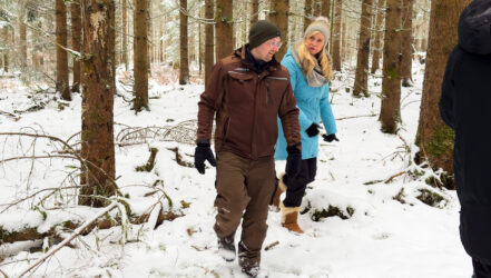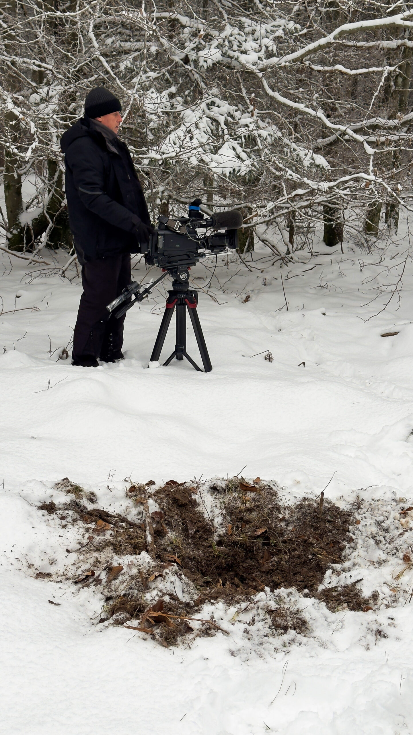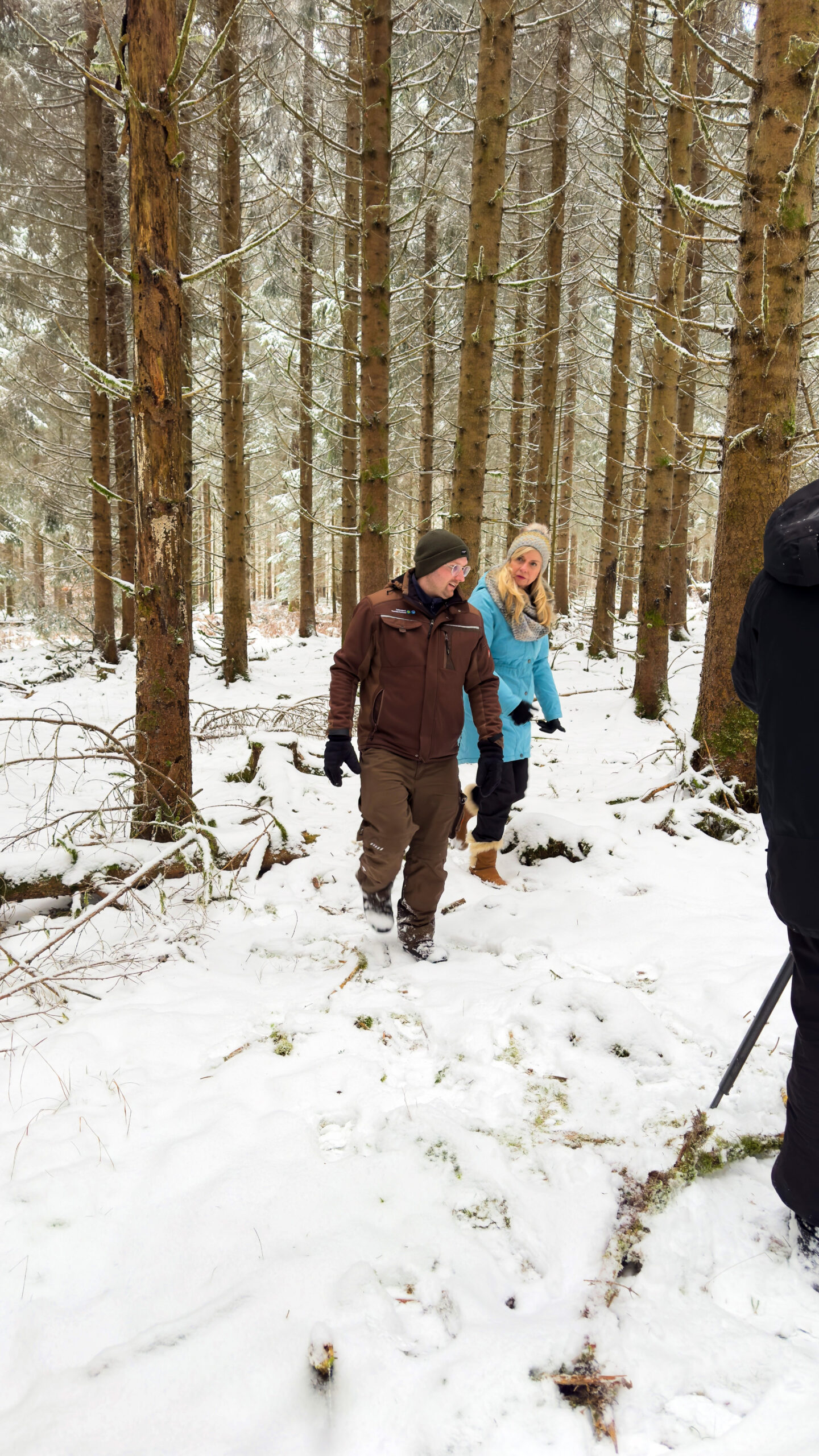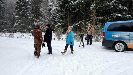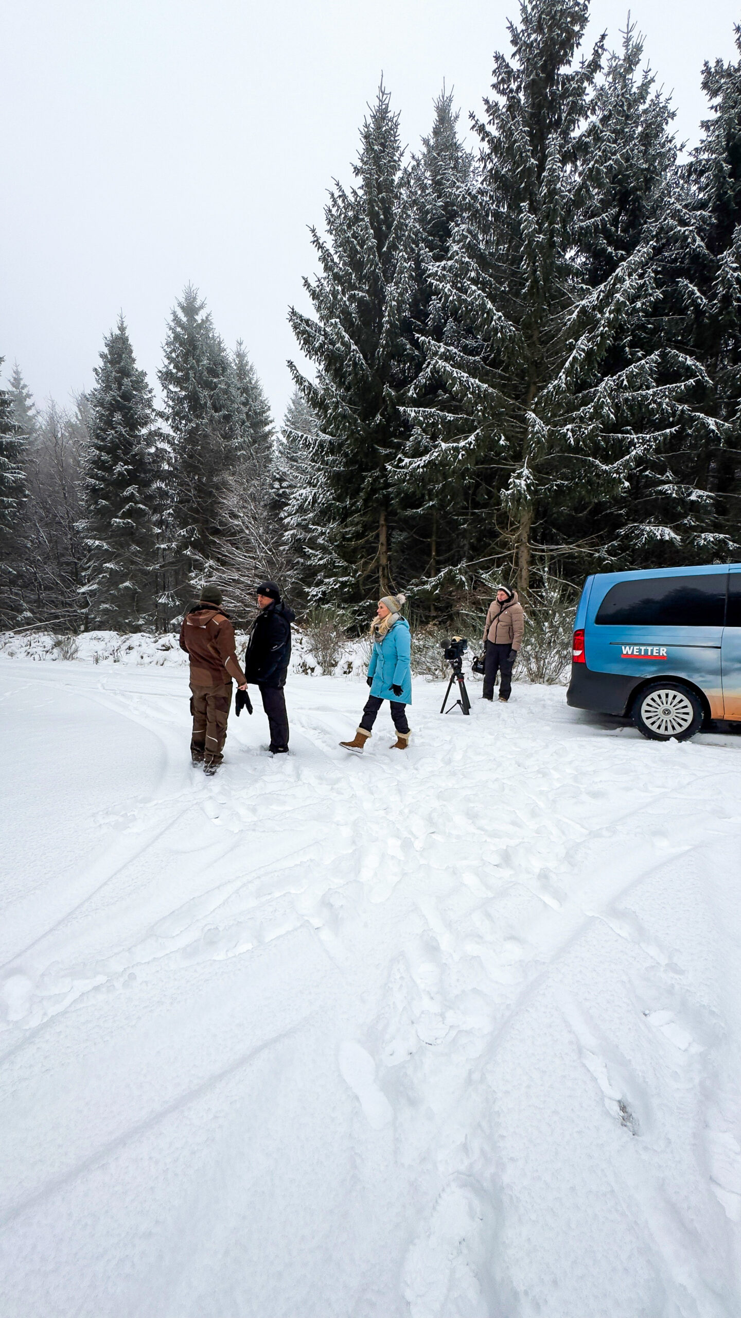 Heute war das SWR-Fernsehen mit der Wetterredaktion der Landesschau im Nationalpark zu Gast und hat sich mit Ranger David Moore auf die Suche nach Tierspuren gemacht. Im tiefen Schnee wurden sie auch sehr bald fündig.